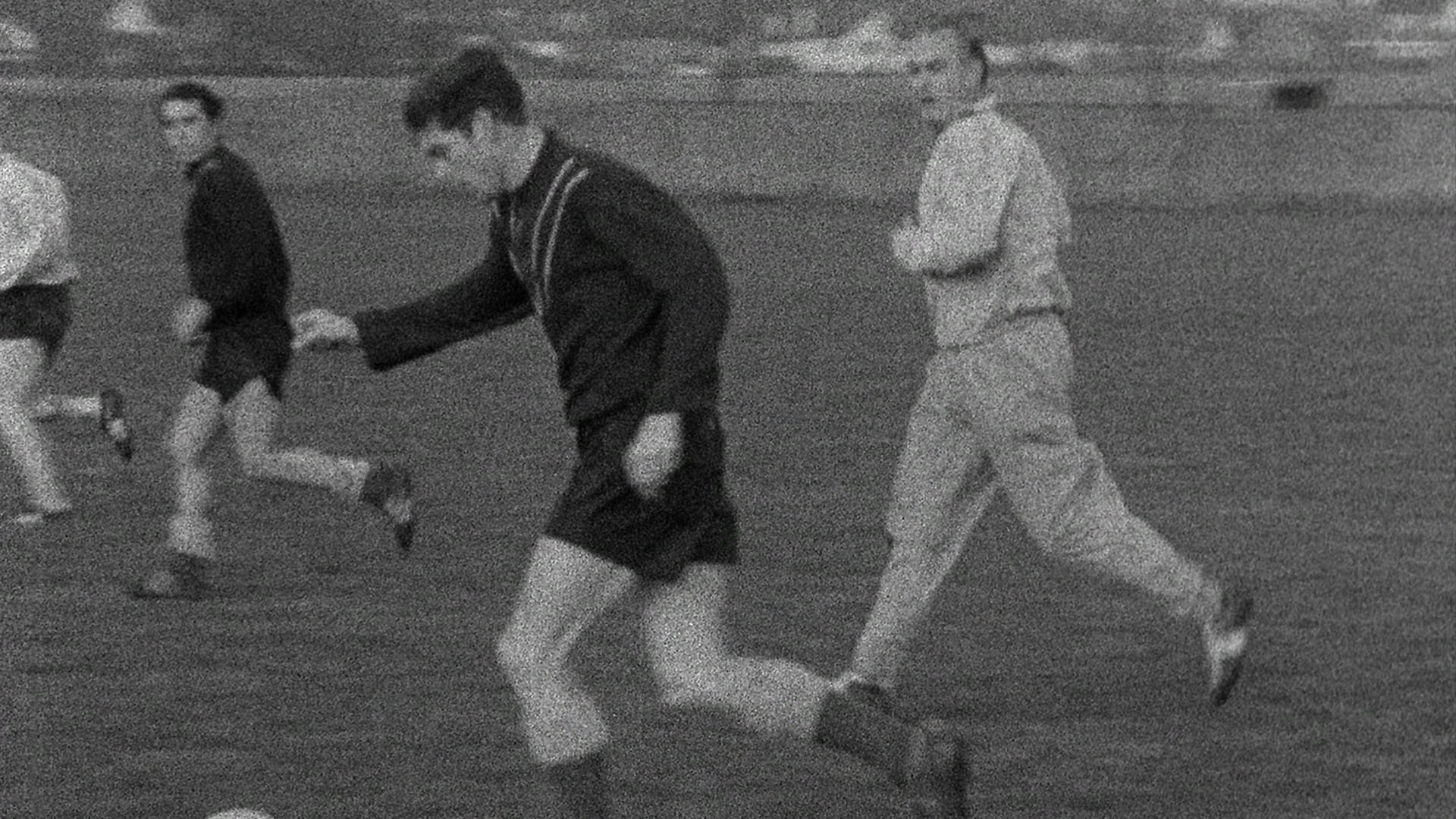 Football teams from two working class towns face off at Sunderland’s Roker Park in the 60s.