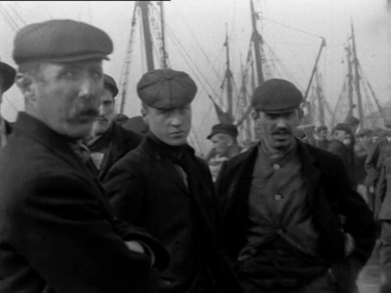 One of the most impressive sights of the year on the English coast was the herring harvest. Hundreds of women would assemble in a race against time to gut, salt and barrel the fish before they went off. Their rapid gutting technique fascinated filmmakers. The trawler men, down from Scotland and the Islands, were famous for brawling, but they won't be persuaded to throw a fist for the camera.