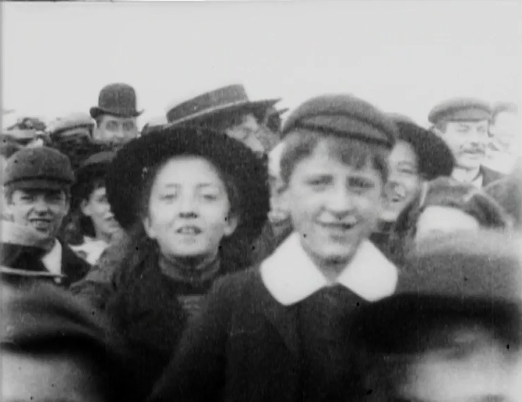 It may not be the best-preserved film in the Mitchell and Kenyon collection, but this is certainly one of the liveliest - especially in the joyous walking race, when the camera plunges us right into the throng. The original negative was found in 1995 without any information about its date or origins. But the distinctive livery and other details of the trams in the first section points to the location being North Shields, which we know M&K visited at least once.