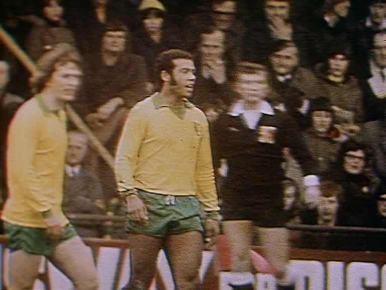 A home game for Norwich City playing at Carrow Road against West Bromwich Albion in 1975. Norwich played The Baggies at least 5 times during this season - in the League, FA Cup and Texaco Cup - so it’s uncertain which game this is. Canaries right back Mel Machin, wearing shirt number 2 attempts several tackles against Baggies winger, Johnson, who is wearing shirt number 11. Machin is finally sent off, with just three minutes to spare until the whistle blows.