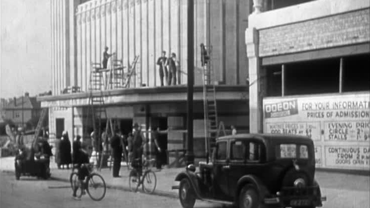 Short newsreel item on the construction of the art deco Chingford Odeon, produced for showing in the cinema on its opening day.