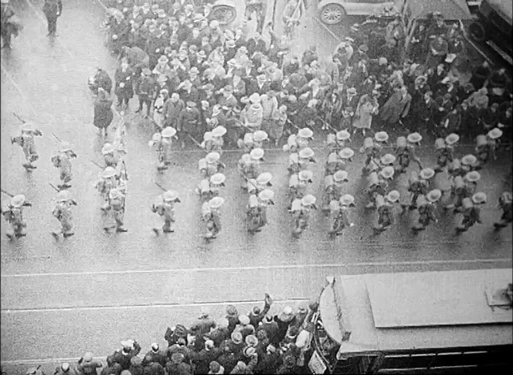 This is one of several Topical Budget newsreel items covering the arrival of British troops in Shanghai early in 1927. The Shanghai Defence Force was formed to protect European interests in the city from Chinese nationalist forces, and included battalions of the Royal Marines and the Coldstream Guards. Troops were withdrawn later that year, but China's long civil war had begun.