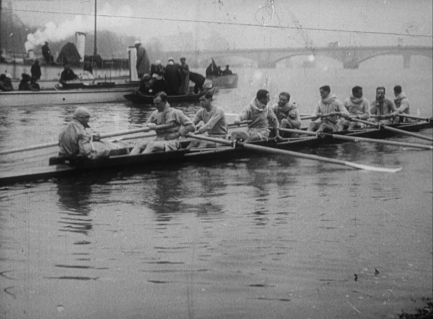 Starting with shots of the crews carrying their boats into the river, this film records key moments from the 1914 boat race, with the rowers wearing scarves to guard against the spring chill. Cambridge were victors and lead from the start – the film shows the boats advancing towards a bridge, and also captures the victorious crew back on dry land with crowds of well-wishers. This was the last boat race until 1920 and four of the winning team would die in the coming war.
