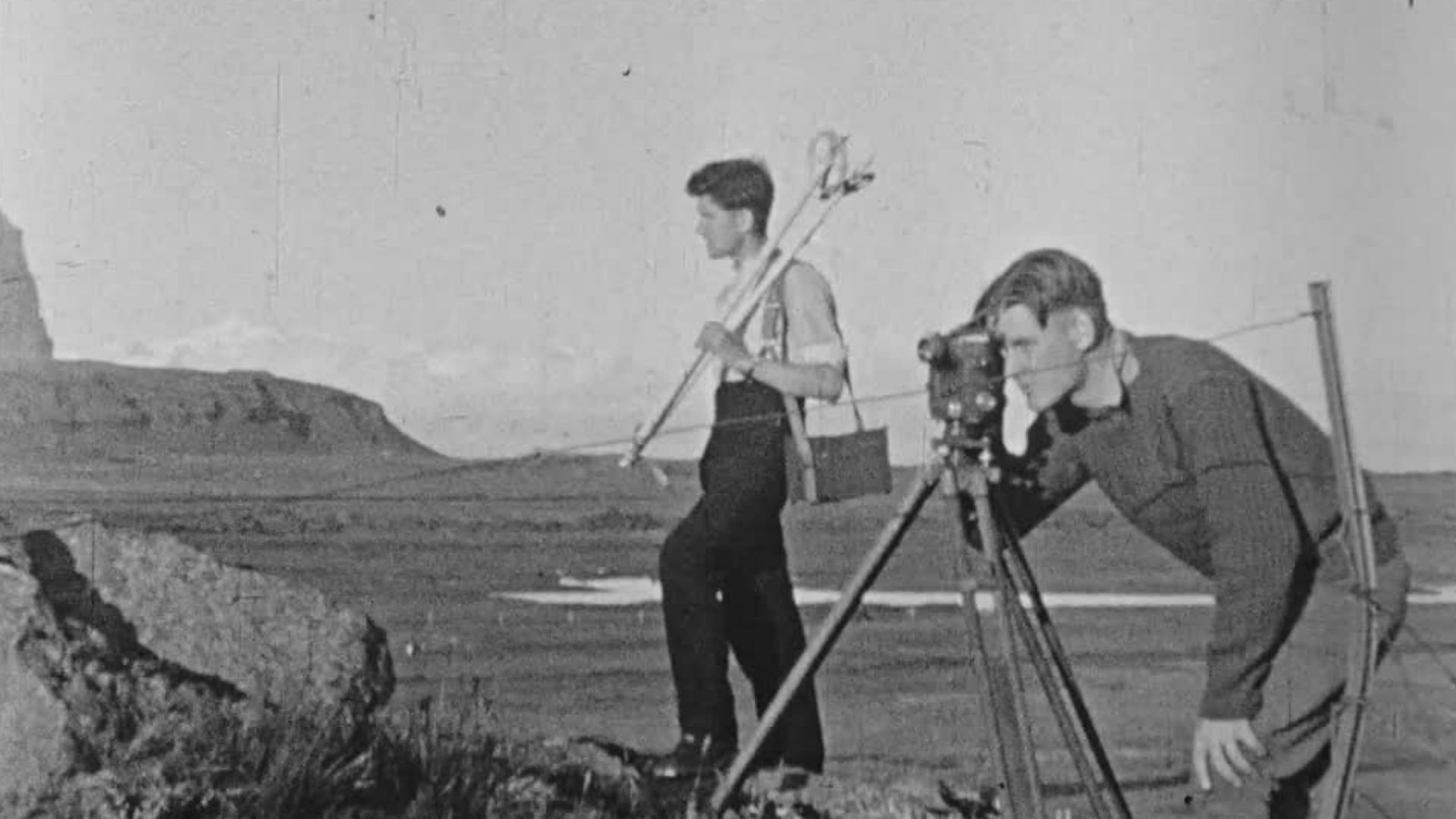 The main purpose of this expedition was to study soil ecology in a sub-Arctic area and of geological and glaciological problems in the Grímsvötn region of Vatnajökull. The group consisted of F.H. Whitehead, the Leader and Botanist, C.W.H. Swithinbank, Geographer, A. Treloar, Surveyor, P, Phizackerley, Geologist, P. Beckett, Chemist and H. Morris, Assistant Botanist. The film records the party loading scientific equipment and supplies on to the trawler Kaldbakur at the Port of Selby, before setting sail and landing at Akureyri at the end of July 1947. Arriving at their base camp, a farm called Kálfafell, south-west of Vatnajökull, the film shows work on soil ecology and survey as well as panoramic shots which include the distant ice-cap of Grímsvötn to which some of the party set out. The lava flows of Hekla – one of Iceland's most active volcanoes are featured - over 20 eruptions have occurred in and around the volcano since 874. The volcano is known as the "Gateway to Hell".