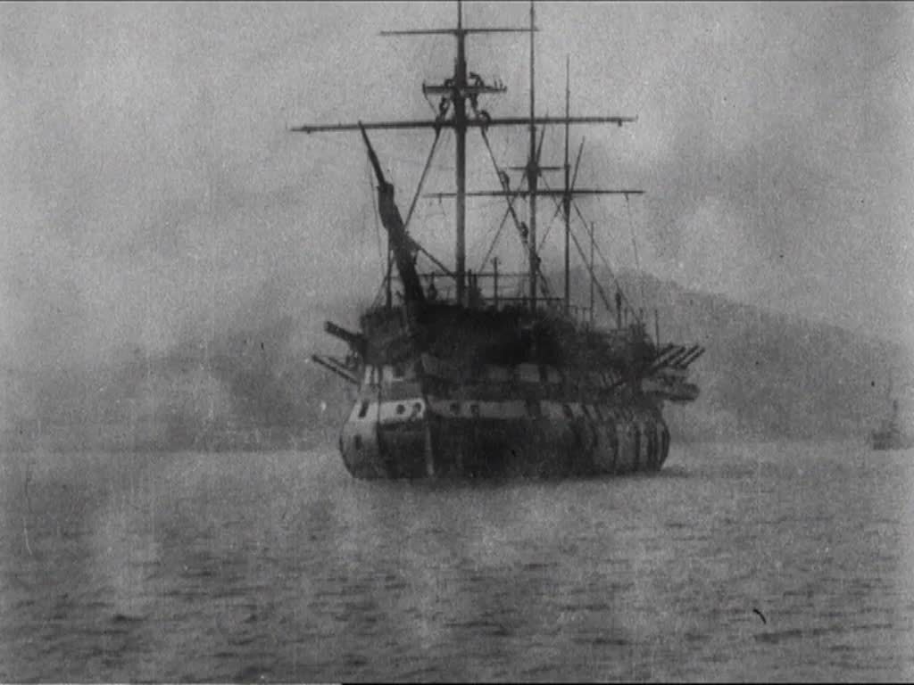 Fans of Bill Morrison's Decasia will appreciate the haunting beauty of the decayed nitrate, which makes HMS Formidable appear like a ghost-ship, shrouded in a mysterious white fog.