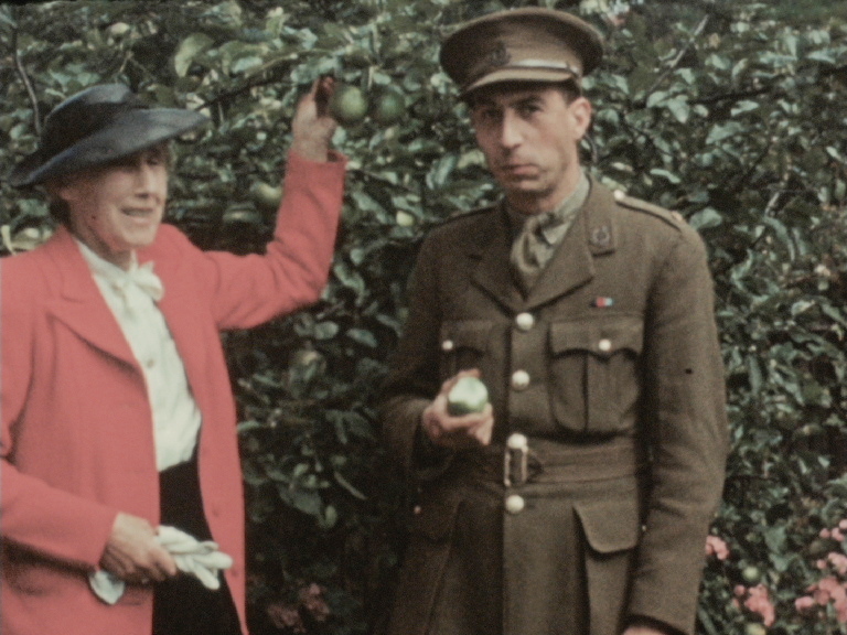 The War might be over but there's work to be done in the Lauste family's garden. So their son, Leslie, now back from active duty, helps his mum with the apples and the hollyhocks.