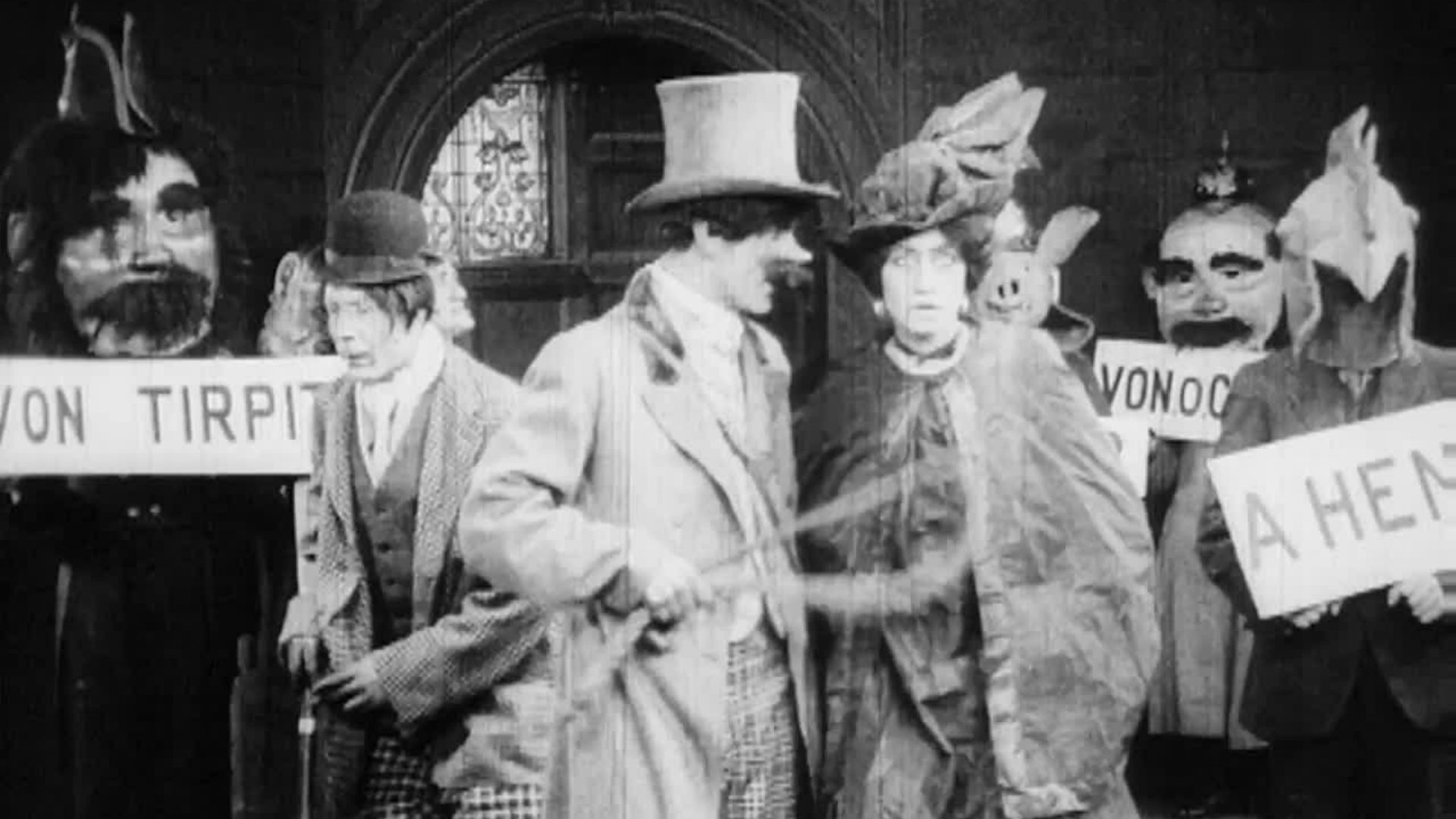 This highly entertaining comedy from the prolific parodist Pimple (aka Fred Evans) reworks a spectacular stage drama of the day with all due disrespect. Fred is the down-on-his-luck Lord 'Elpus, who bets all his remaining readies on the race horse of the title, but nearly falls prey to the nefarious Lord For-Givus. The climax is a hilariously shambolic pantomime horse race, where every expense is spared in the interest of screen realism.