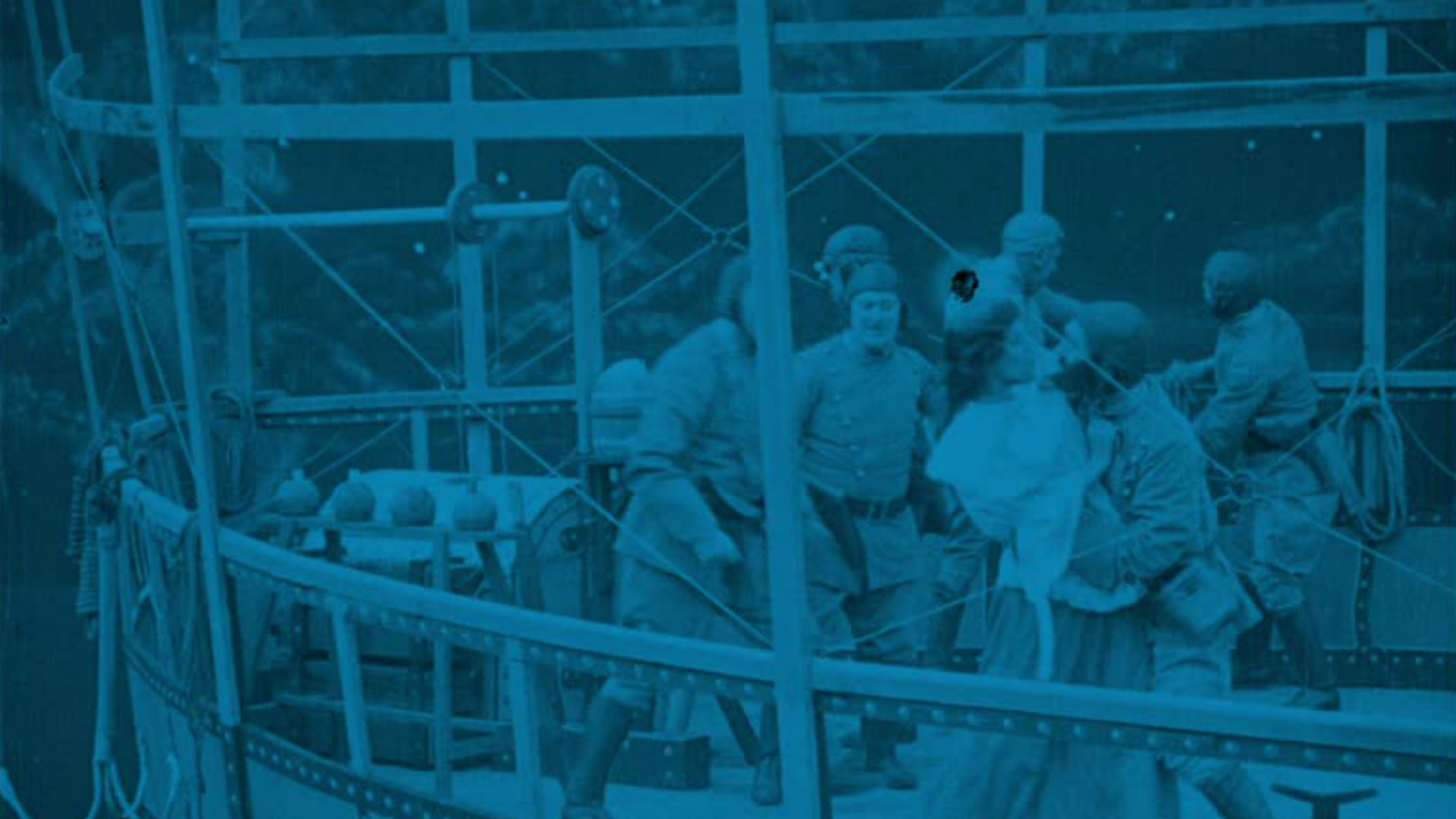 A rip-roaring adventure tale with a nod to Jules Verne, as a band of futuristic cut-throats and their black-bearded captain forsake the high seas for the wild blue yonder, terrorising the skies in their trusty airship. After bombing a liner and stealing gold bullion from its hold, the band of ruffians try to make good their escape, with only a valiant naval officer and his sweetheart to bar their way.