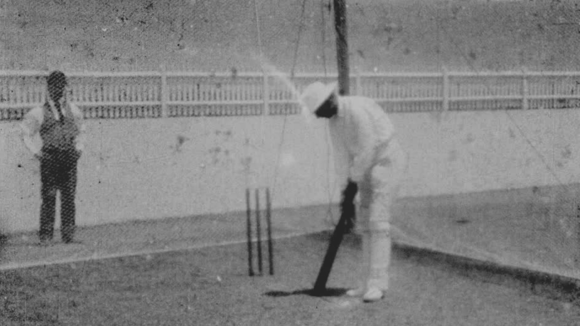 A film fit for cricketing royalty! This is the oldest surviving cricketing film, and probably the first ever made. It features Indian Prince Ranjitsinhji trying out a selection of strokes while on the 1897-98 winter tour with the England team to Australia. Captured from a camera positioned in the silly-mid-off area by the netting, it was one of four films shot during the tour by Henry Walter Barnett (the other three are lost).