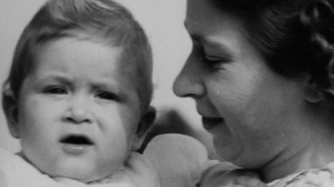 Mischievous baby Charles toys curiously with the necklace of his giggling mother, the future Queen