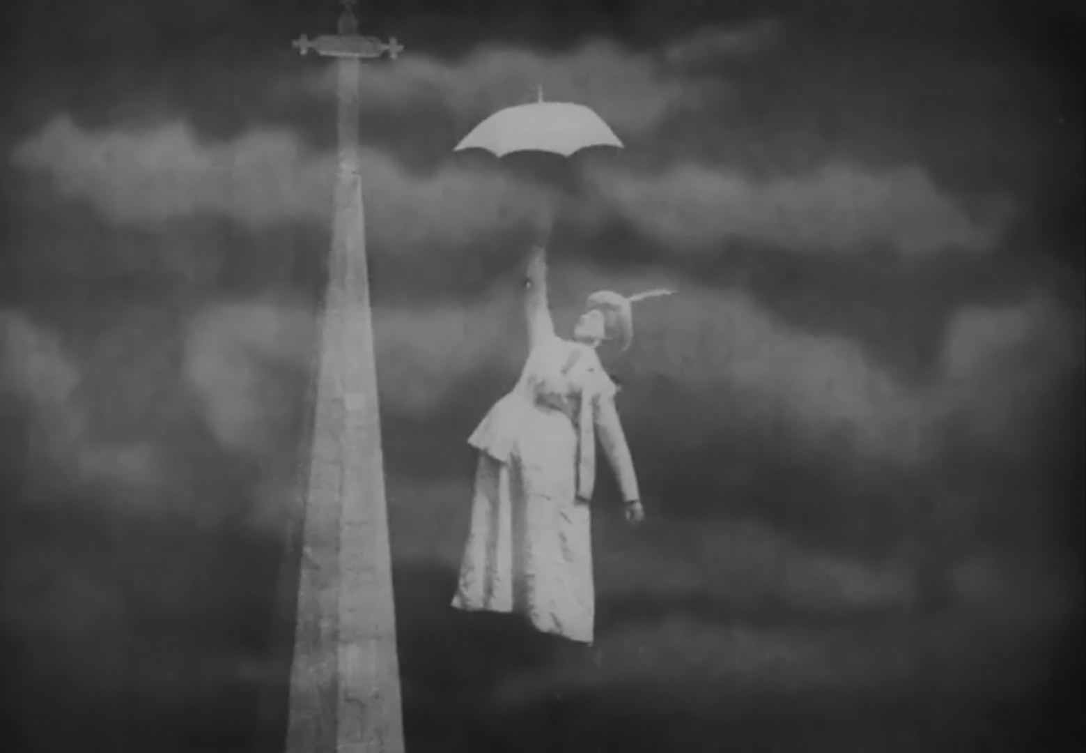 This lively sci-fi 'trick' film sees a woman (or, more accurately, a man in drag) blown skywards following a road accident to become stranded on a church spire. But all may not be lost, as an elderly, eccentric inventor is called upon to rescue her. With the aid of his bizarre flying-machine (a boat with flapping wings and propellers attached to its underside), can the inventor save the day?