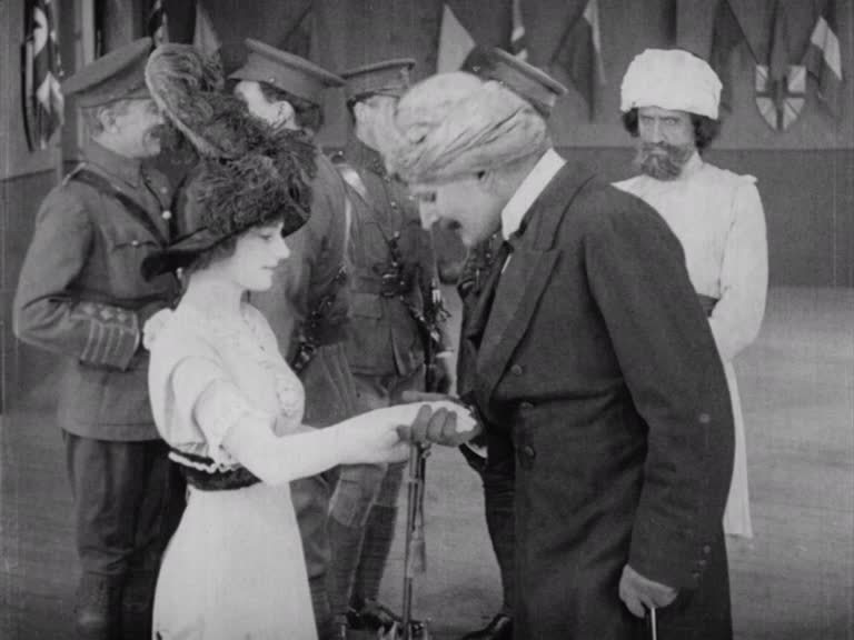 This film was produced by the Twickenham-based London Film Company (no connection with the London Films run by Alexander Korda from the 1930s to 50s), and was one of many shorts made quickly and relatively cheaply for screening in mixed cinema programmes. Director Harold Shaw had been brought over from America to inject a dash of Hollywood verve into British cinema, staying some eight years. Shaw's own wife Edna Flugrath plays the unfortunate heroine, Edith. The keen-eyed will spot that the main title card on this copy reads 'The Ring and the Rajar', and bears the imprint 'Selig'. This is probably an American release print. To add to the confusion, the contemporary journal Bioscope referred to the film as 'The King (sic) and the Rajah' in its review.