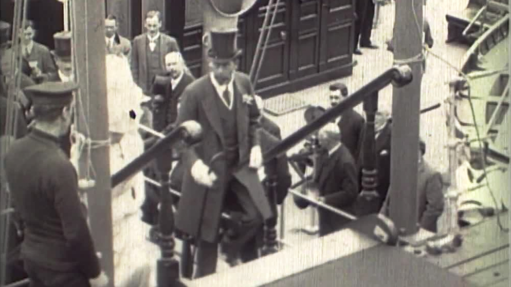 War was looming ever closer by July of 1914, and the state of Britain's Navy was a key concern: one reason why the King should choose now to visit Fairfield shipyard on the Clyde. The King, Queen and Princess Mary are received by Anglo-Scottish industrialist William Beardmore, who invites them on board the majestic HMS Benbow, an Iron Duke-class battleship who would serve in the Battle of Jutland.