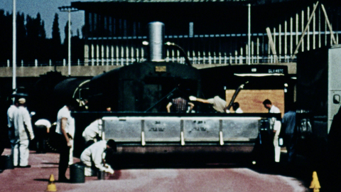 Detailed recording of the many process involved in laying the Tartan track at the Crystal Palace Athletics Stadium ahead of the 1968 Olympics.
