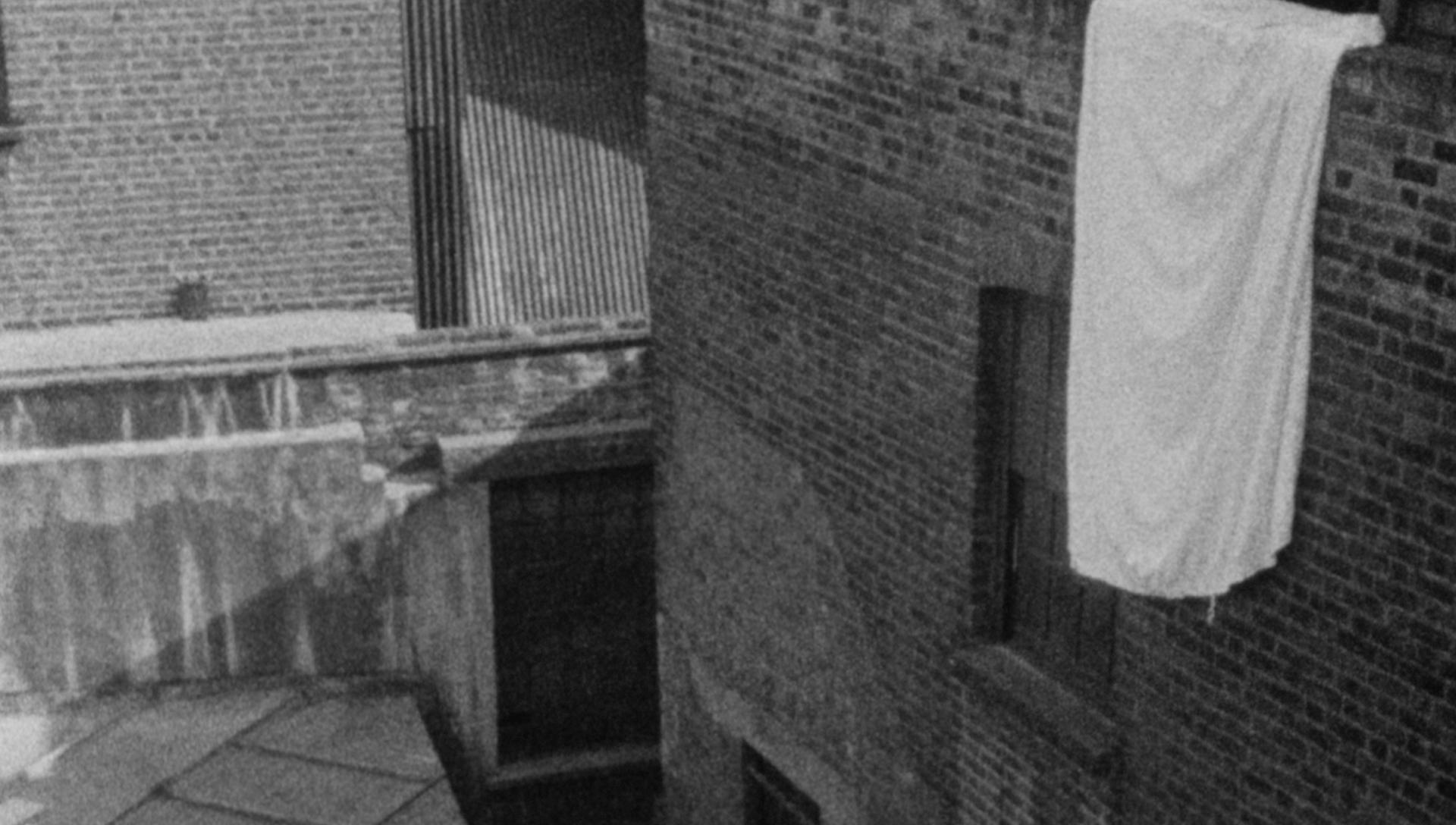 A film of architectural, indoor and countryside locations in which a 3 metre square white linen sheet appears within each location as a focal point. Sometimes like a billowing sail, at other times a discarded rag or a shroud. The sheet appears in odd places, making familiar objects look strange and uncanny.