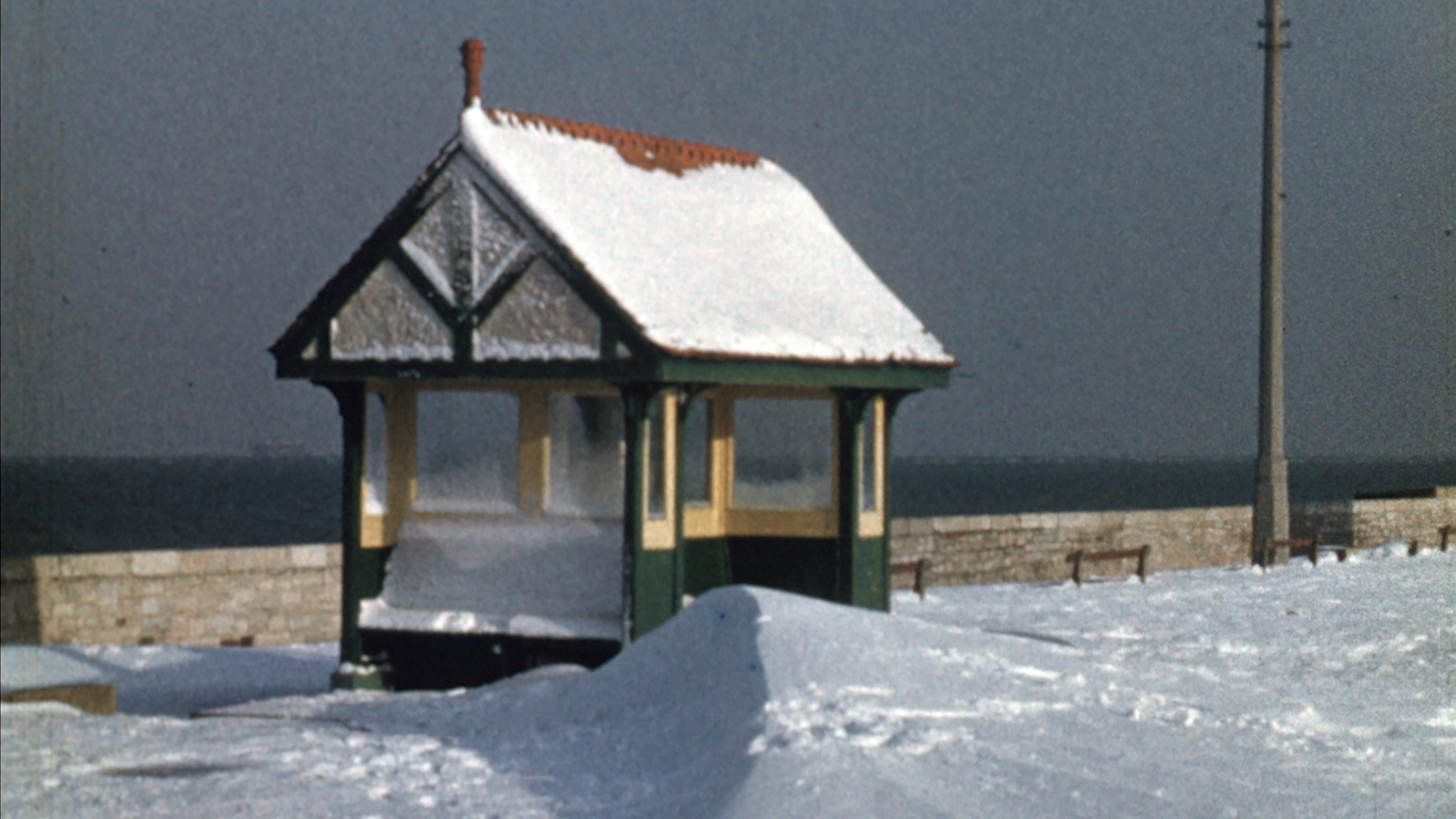 Fred Ward's amazing film starts in a snow covered garden before moving to the seafront at Ryde. Everything is covered in a heavy blanket of thick snow. Various landmark buildings like Ryde Castle are seen as well as the Promenade and sea wall. The thick snow covers palm trees, promenade shelters and rowing boats on the beach. The film ends with a solitary figure on the promenade and Ryde Pier in the distance.