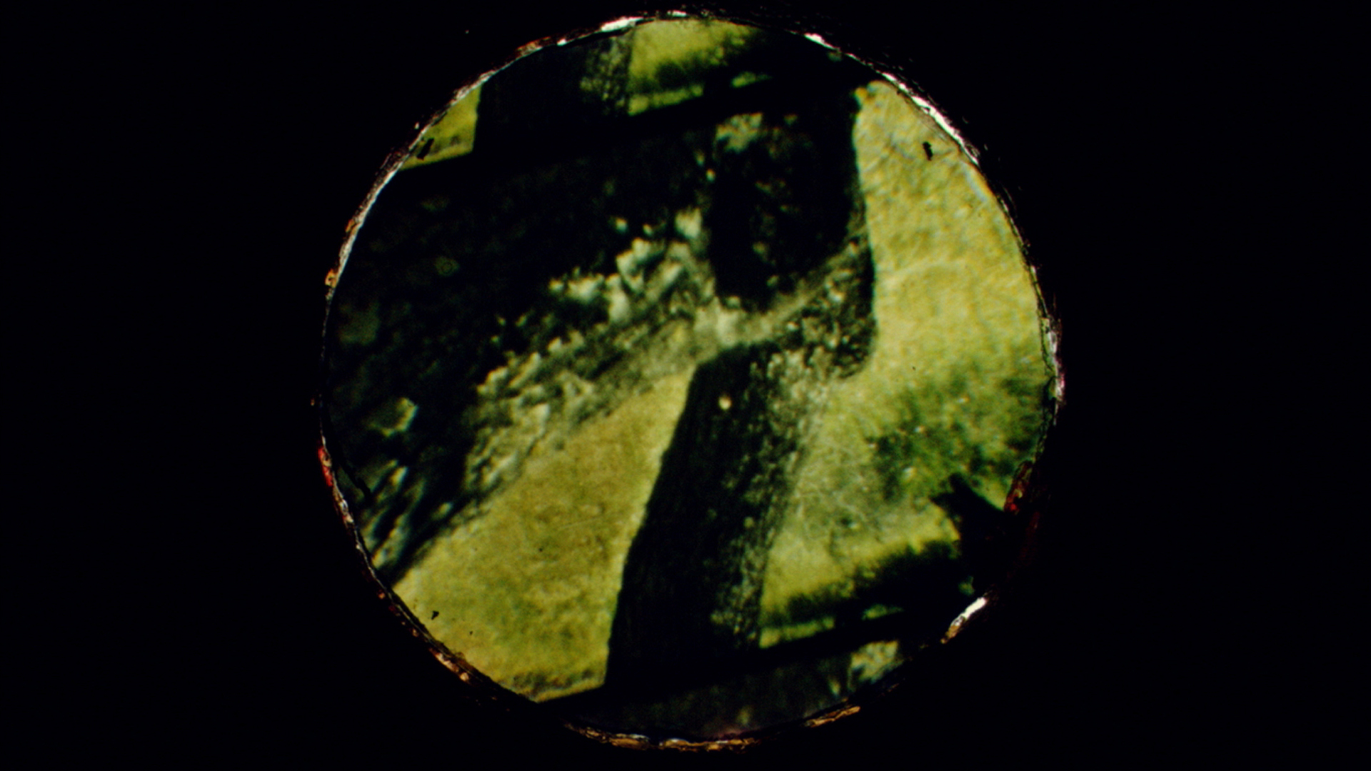 This film was handmade by punching circular holes into fully opaque 16mm film stock at rhythmic intervals. Discs of colour film have been laid into some of the holes. Only the original copy of this film exists – it cannot be printed and is therefore projected only on rare occasions. As with other Le Grice films from the late 1960s, Spot the Microdot is marked by a radical rejection of ‘illusionism’, choosing to focus instead on the material properties of the film medium itself.