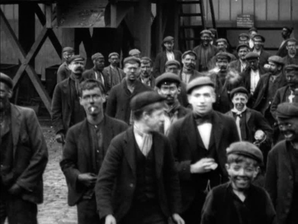 Mitchell & Kenyon more commonly filmed outside textile mills or engineering factories, so it's interesting to see them in a mining town. This film also sheds light on their techniques for filming departing workers. Several separate 'takes' capture varying combinations of men and boys exiting the site under the filmmakers' supervision. What shots reached the screen we'll probably never know.