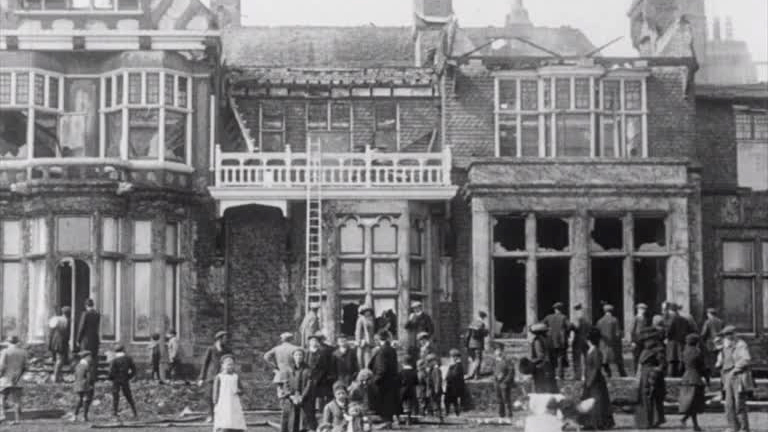 This Pathe newsreel captures the aftermath of an arson attack on Levetleigh House, St Leonards, former residence of Conservative MP for Hastings and Rye Arthur Du Cros. The attack was orchestrated by suffragette Kitty Marion, by way of a protest against the politician's staunch resistance to women's suffrage.