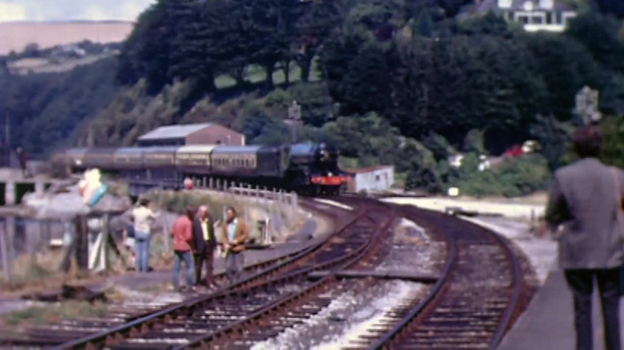 The famous green steam locomotive the Flying Scotsman 4472 returns to tour along the English Riviera at Torbay with a distinct 1970s wish you are here picture postcard feel. A steam train still operates on part of this line from Paignton at Goodrington Sands to Dartmouth. Operated by London and North Eastern Railway (LNER) from 1923 the Flying Scotsman was put up for scrap by British Rail in 1962 and survived a further 10 years before being shipped to tour in America and Canada.
