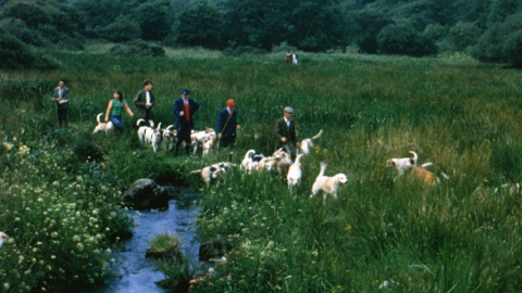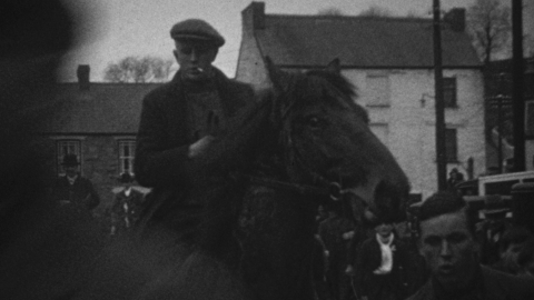 This film was shot in the main by Lt Col W H Buckley of the Buckley's Brewery (Llanelli) family and Master of the Carmarthenshire Foxhounds. The hound meet, where a stirrup cup is enjoyed before the off, takes place at ‘Castell Gorfod’, where Buckley’s own invention – the potato laying machine – is seen in action. Buckley is recorded making the presentation to the Milkmaid of the Year and drinking a glass of the white stuff which he was not partial to and which had been made more palatable by the addition of a tot of whiskey. The Milkmaid is troubled by hounds jumping up at her, owing to the fact that her fox fur had not been properly cured and thus smelled interesting!