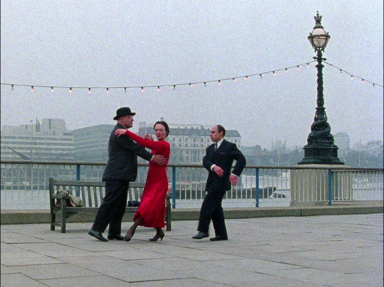 This tale about three eccentric characters and their conspiratorial plans to reveal government secrets is played out like a silent comedy - or a Technicolor musical. Against a backdrop of familiar London locations, body gestures and movements are precisely but playfully performed to the dramatic music of Prokofiev's Romeo and Juliet.