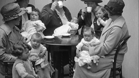It's National Baby Week and infants in varied moods are wheeled into a welfare centre in Ealing for examination.