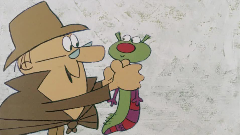 A nutty professor meets a very hungry caterpillar in this animated chase cartoon brimming with swinging 60s backdrops.