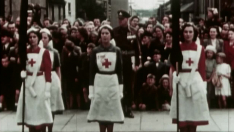 The Princess Royal inspects members of the Red Cross in a large dedication ceremony held in Newtownards