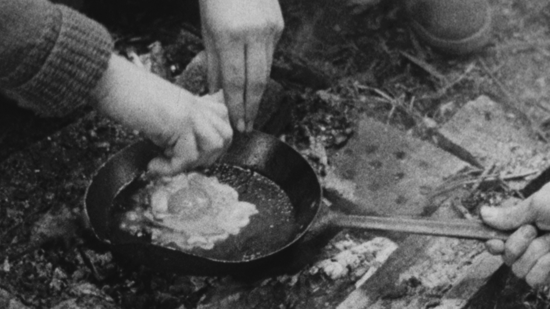 Country living can afford the sort of opportunities that scouting was invented to deliver: plenty of fresh air and the learning of self reliance through practical and useful tasks, with a bit of fun thrown in. At Maesmawr Hall farm near Welshpool, David Trant, son of the farmer/film-maker, and two friends burn weeds and cut and transport reeds across the lake to an island hut they are building. A pigeon for the pot and campfire fried eggs ensure they don't go hungry.