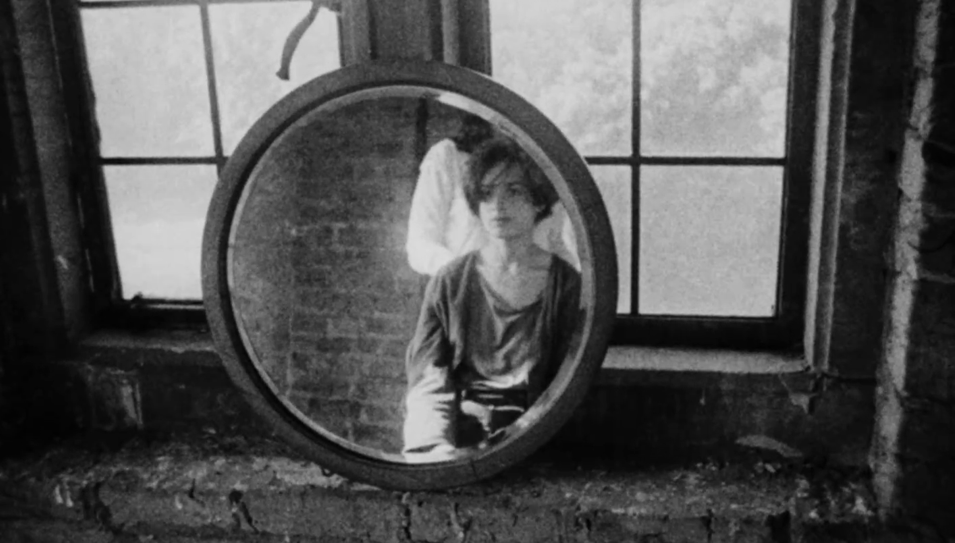 A female dancer performs in front of what appears to be a wall of mirrors until her reflection takes on a life of its own.