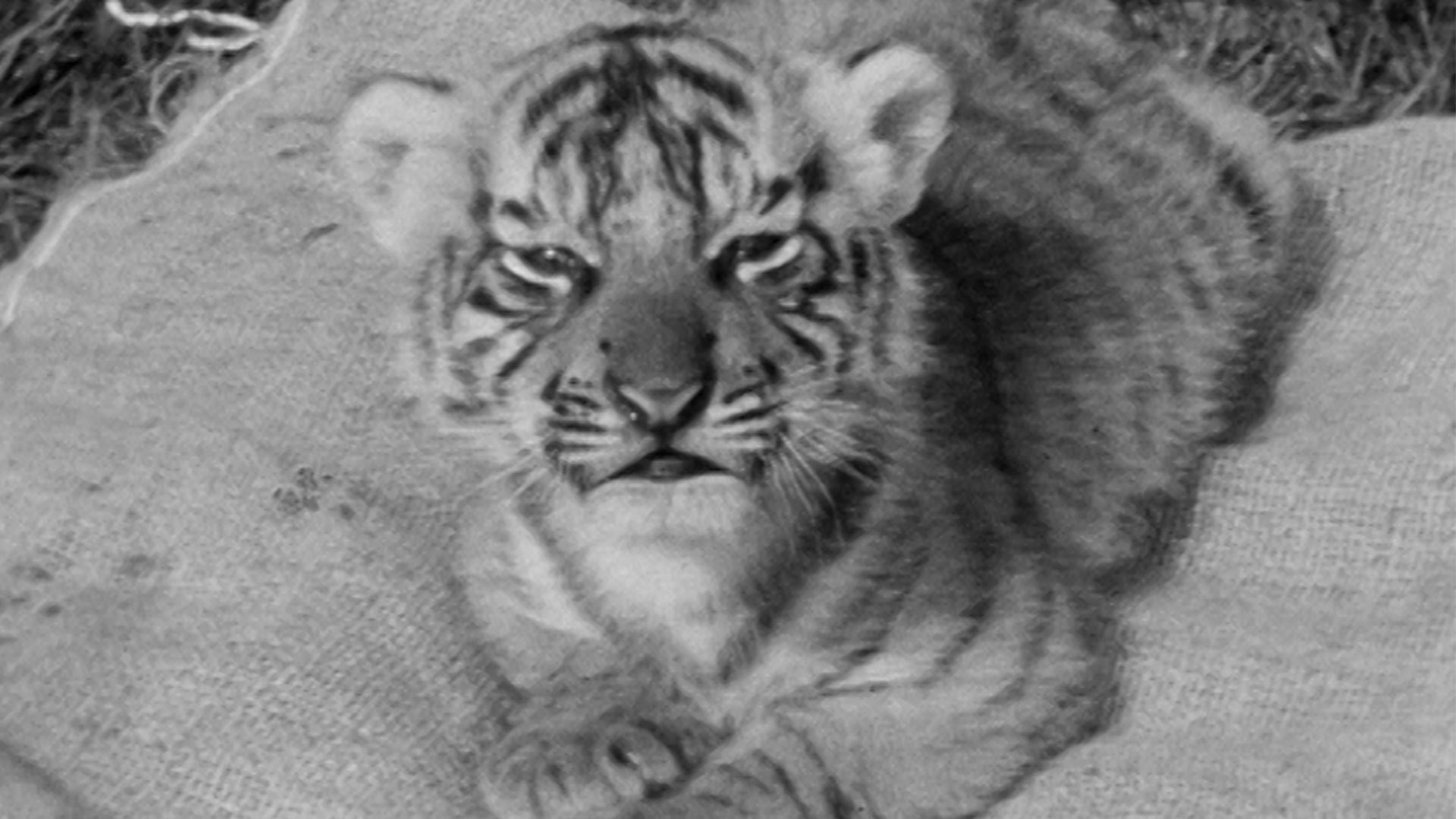 Two small Bengal tiger cubs born at Paignton Zoo are captured on their first outing since being born. These cubs would have been bred for educational purposes and hybrids of actual Bengal tigers. In the late 70s and early 80s zoos turned their breeding programmes into important conservation work. These two cubs eventually found their way to another zoo and Paignton now has Sumatran tigers.