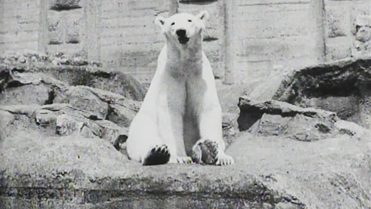 Sam the polar bear had been a fixture at London Zoo for 24 years. Two years earlier before this item a Topical Budget newsreel hinted that all was not well. Now, the newsreel reports he has been put down - or, as a title card more bluntly puts it, "shot at dawn to end his infirmities".