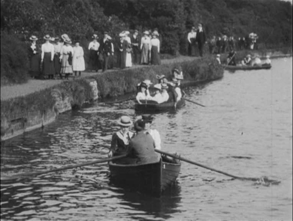 These scenes were filmed at West Yorkshire's Sunny Vale pleasure gardens for their owner, Joseph Bunce. On this sunny summer's day the gardens are full of people in Sunday best enjoying swings and rides, music and dancing. The film adds staged comic scenes (perhaps Bunce and his sons), including a young man in women's clothing falling during a donkey race, showing an expanse of frilly knickers.