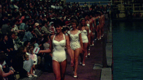 Focused on beauty in swimwear at the Tynemouth outdoor pool in the early 1960s.