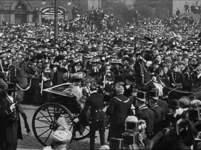An artist and sculptor herself, and the first member of the royal family to exhibit at the Royal Academy, Princess Louise made an apt choice to unveil a statue to her late mother, Queen Victoria, on Blackburn's Boulevard. Mitchell & Kenyon's cameras captured the large formal procession, plus close-up shots of the Princess (known for her dislike of royal protocol) chatting happily to her hosts.