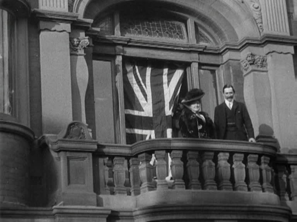 This is one of just a few politically-themed films in the Mitchell and Kenyon collection - the filmmakers generally preferred more ordinary (and possibly less divisive) subjects. The politician on the balcony of Blackpool's Wainwright Conservative Club appears to be Wilfred Ashley, perhaps celebrating his 1906 election as the town's MP, who greets a lively crowd before leaving in a carriage.