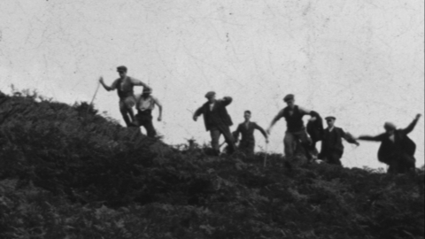 This is the 4th in a series of dramas made when Meredith (with camera) and his colleagues from TB enjoyed an annual camp at Richard Ellis Jones’ farm, Penygeulan, at Llanymawddwy. First was ‘Early film-making at Welsh Camp’ (1929), then came ‘Farmer John’ (1930), ‘Jack Reforms’ (1931) and then this film, ‘We Regret’ (1932). Each features Jack Whale (which may or may not be his real name) as the bumbling, lead character and here he wears a distinct Charlie Chaplinish air, with some beautiful scenes shot on his journey by foot from Staffordshire to Llanymawddwy.