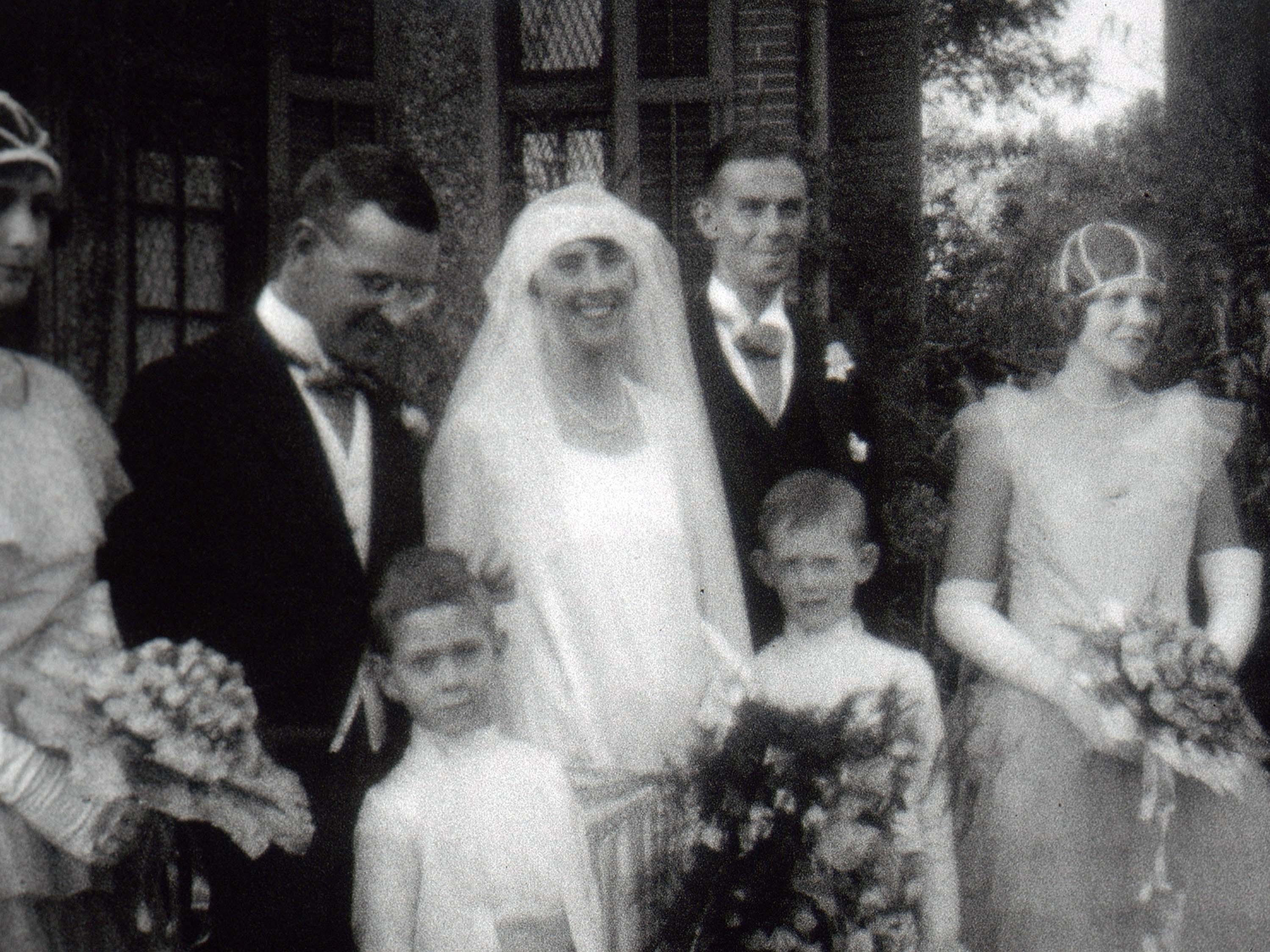 It's William and Charlotte Simpson's wedding day in 1928. We first see them driving away from Shanghai's St Ignatius Cathedral, also known as Xujiahui Cathedral. Next we see the happy couple entering a leafy garden in one of Shanghai's suburbs though one could be forgiven for thinking one was in Surrey. Amid the cloche hats, bridesmaids, page boys and other morning-suited guests, a single Chinese servant accidentally intrudes into the scene.