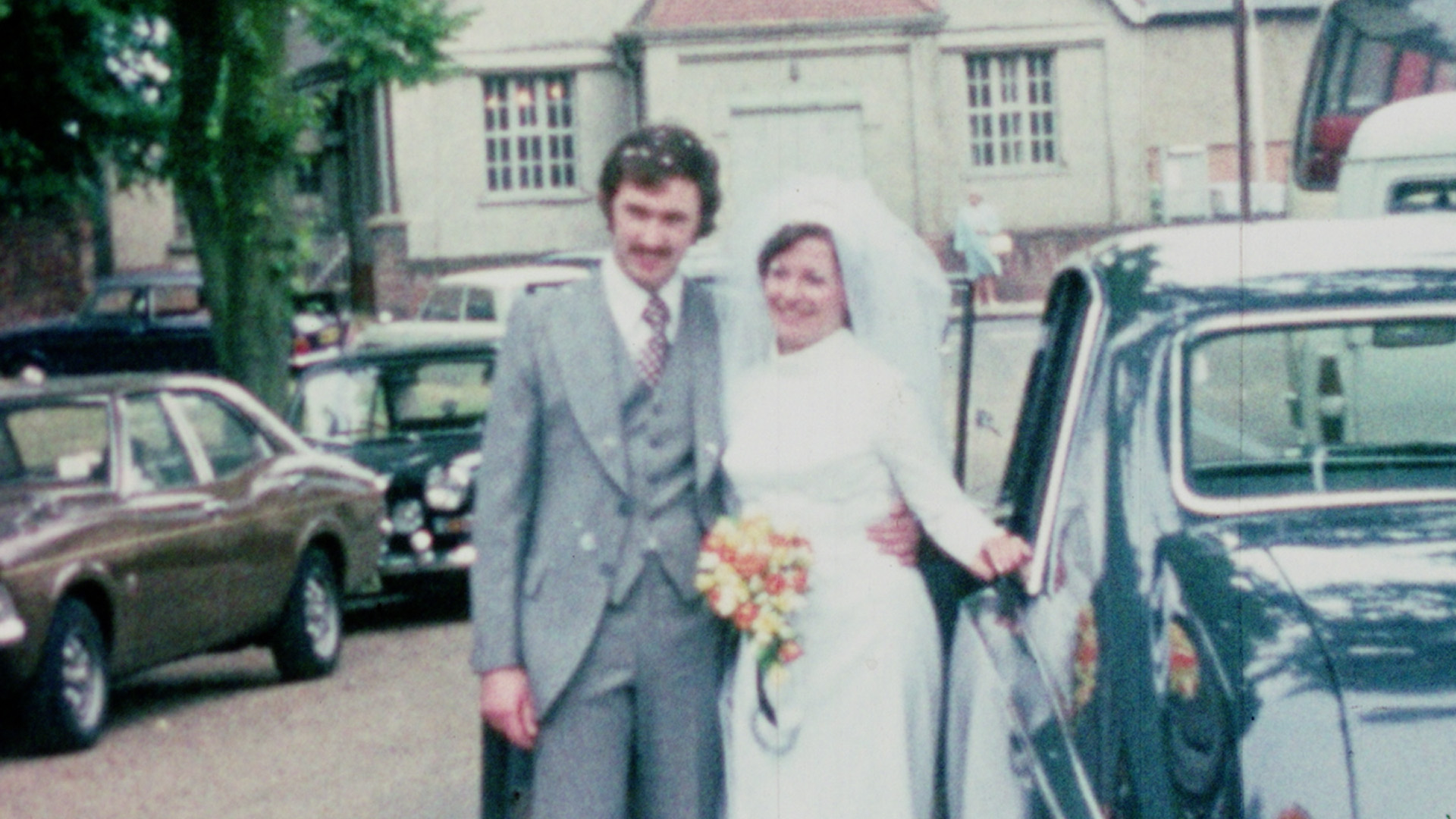 Re-live the fashion of the 1970s as Carole and David tie the knot. Big hats, kipper ties and lots of confetti.