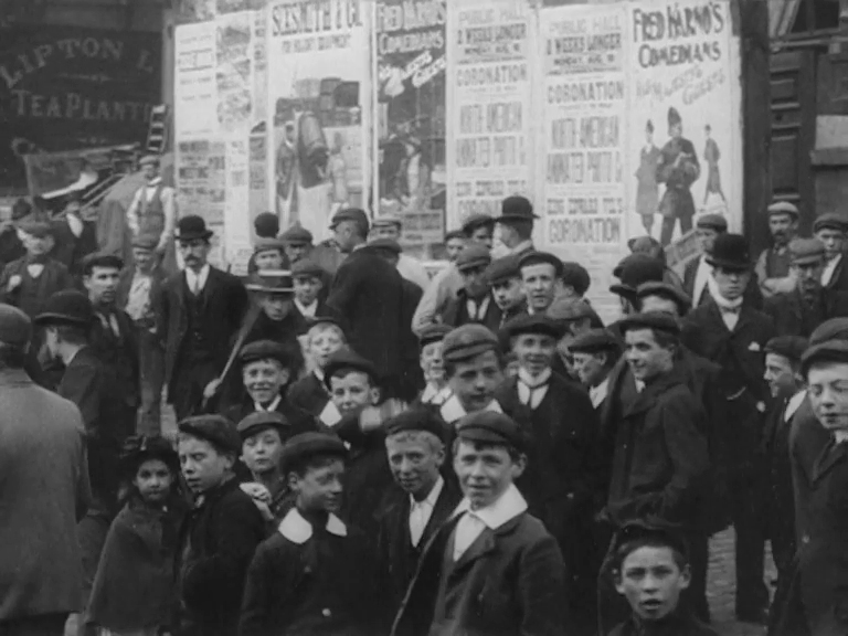 Some particularly deft camera positioning gives this film of Wigan's coronation procession an extra charge. The procession approaches the audience head-on - before turning off just in front of the camera. It's a striking effect, reminiscent of French film pioneers the Lumière Brothers who, so legend has it, had naïve audiences straining to get out of the way of an oncoming train.