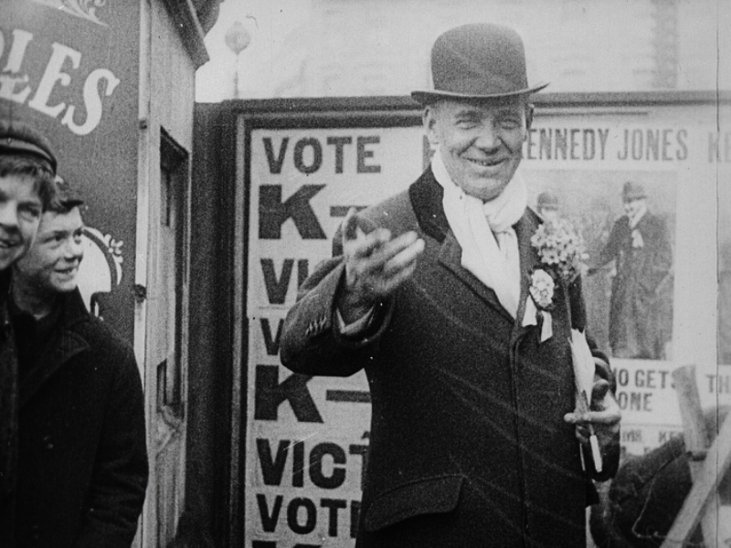 A wonderful newsreel showing scenes at the 1916 by-election in Wimbledon, featuring charismatic challenger Kennedy Jones.