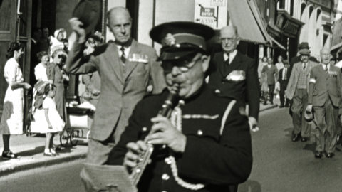 War veterans from the Old Contemptibles Association march through the streets of Winchester in this poignant 1947 film from W J Prall