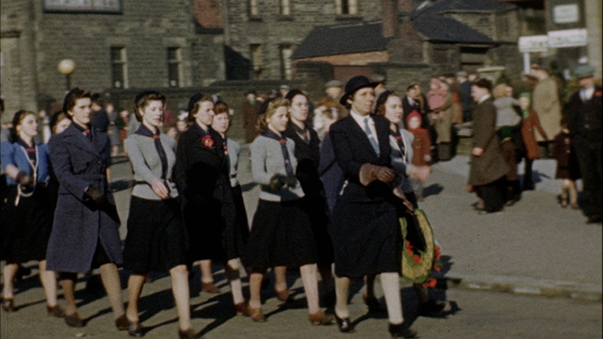 An understated resolve can be seen on the faces of these servicemen and women as they march through the streets of Chapeltown, near Sheffield, to raise money for bombers in 1943. Already well drilled from previous fund raising events, it is fascinating to see the mixture of emotions among the serving personnel on view, and those watching, and evidence of how the wartime discipline and order keeps it all in check; with the British Legionnaires having seen it all before.