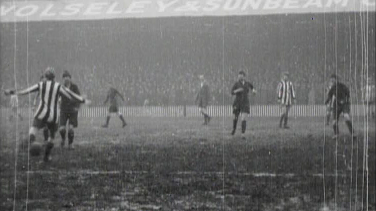 By the early 20s large crowds were turning out to watch women's football teams, and Dick, Kerr Ladies FC from Preston was one of the most famous. Here we see their arrival in Bradford and some rainy match action against local team, Lister's Ladies, in front of a packed Valley Parade. This is most likely the match from April 1921 with a 6-0 victory to Dick, Kerr Ladies, who are playing in the stripes.