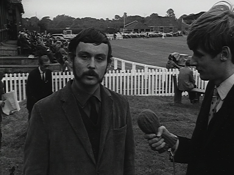 Chris Peacock for Anglia TV welcomes the viewer, on a rather blustery and dull-looking day, to Anlaby Road’s The Circle, the traditional home to Hull Cricket Club where the County Championship continues with a three-day battle between Yorkshire and Surrey. Currently, Yorkshire head the Championship table, and of course East Riding fans are optimistic, as is Mr Arthur Body, the Honorary Secretary for Hull Cricket Club, who predicts a match win for Yorkshire.