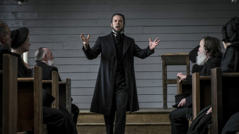 Guy Pearce, Dakota Fanning, Kit Harington star in a brutal revenge tale about a mute midwife in the old American west.