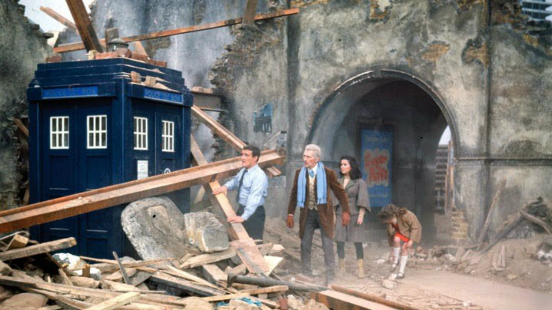 Peter Cushing fires up the Tardis for the Doctor’s big-screen debut, as he and his companions travel to a devastated planet ruled by the Daleks.