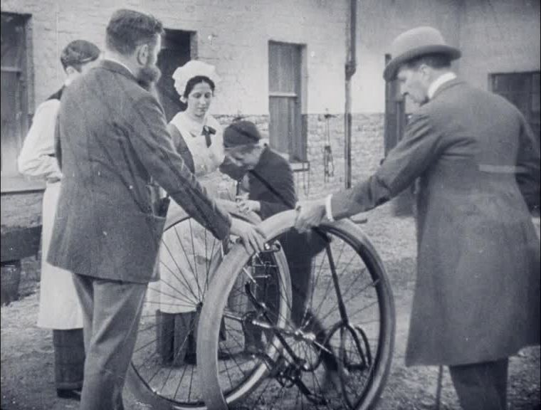 For the 50th anniversary of JB Dunlop's invention of the pneumatic tyre, the company he founded patted its own back by commissioning this very pleasant commemorative film. The chaps at Merton Park Studios turned in a briskly efficient promo in which gentle, good-humoured reminders of 'boneshakers' of cycling yesteryear give way to an exposition of the range and reach of a modern global business.