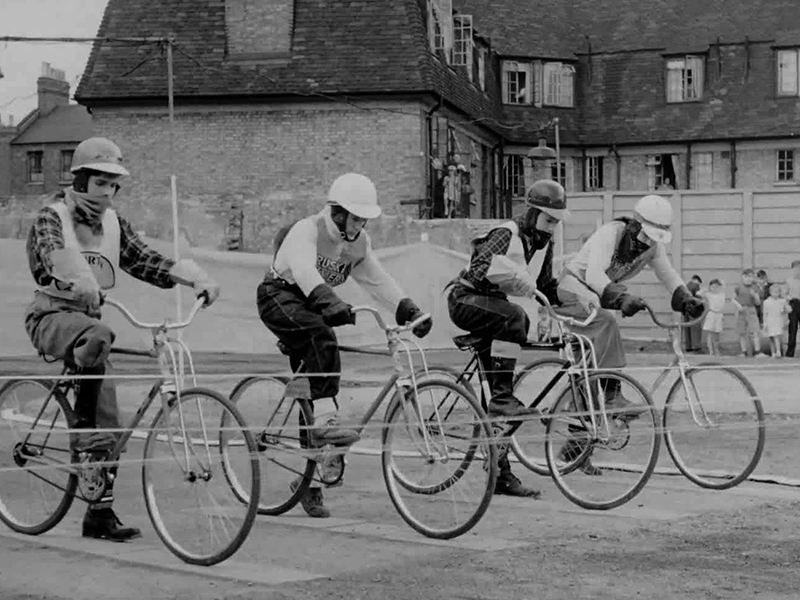 Young 'Swanky' Clarke, leader of the Burton Bullets Cycle Speedway Club, foils bicycle thieves on the streets of 1950s Bermondsey.